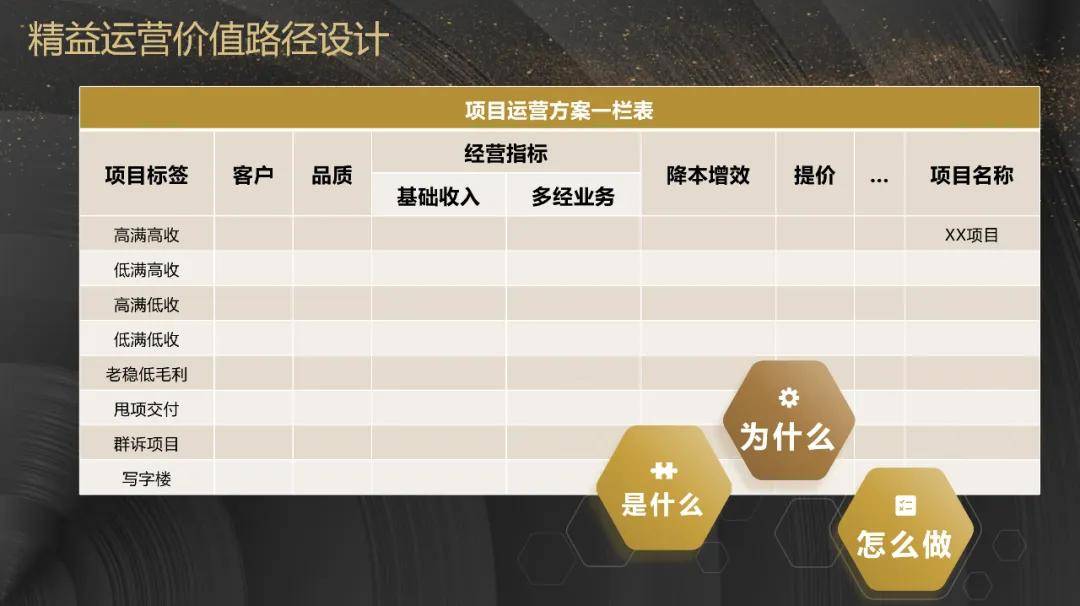 物业项目可分为 “高满高收”“低满低收”“老稳低毛利” 等多种类型,需避免 “一刀切” 方案。