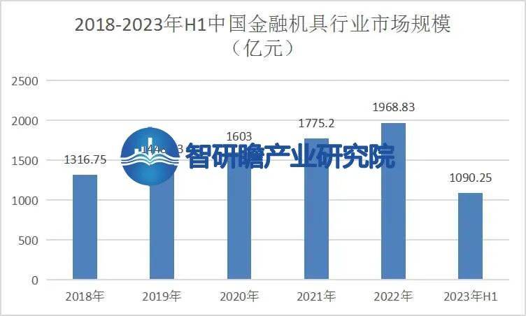统计数据显示,2018年中国金融机具行业市场规模1316.75亿元,2023年H1中国金融机具行业市场规模1090.25亿元。2018-2023年H1中国金融机具行业市场规模如下: