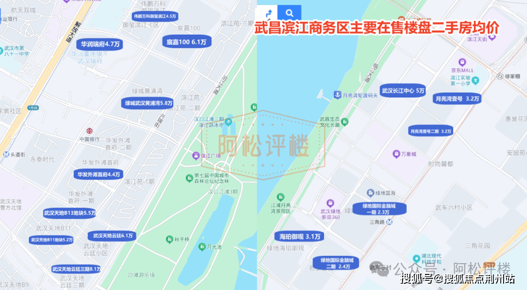与之相比,武昌滨江新房单价则约21XXX-4XXXX元/平不等,只有核心区极个别楼盘单价约4万+元/平,置业门槛约200多万起。