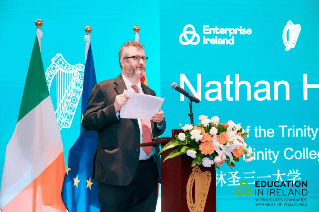 据爱尔兰驻华大使欧博仁介绍,中国与爱尔兰合作办学机构及项目总数达110个,在读学生超过12000人;今年将新增三所合作办学机构,分别由爱尔兰皇家外科医学院与苏州大学、利莫瑞克大学与河南理工大学以及格里菲斯学院与河南经贸职业学院共建。