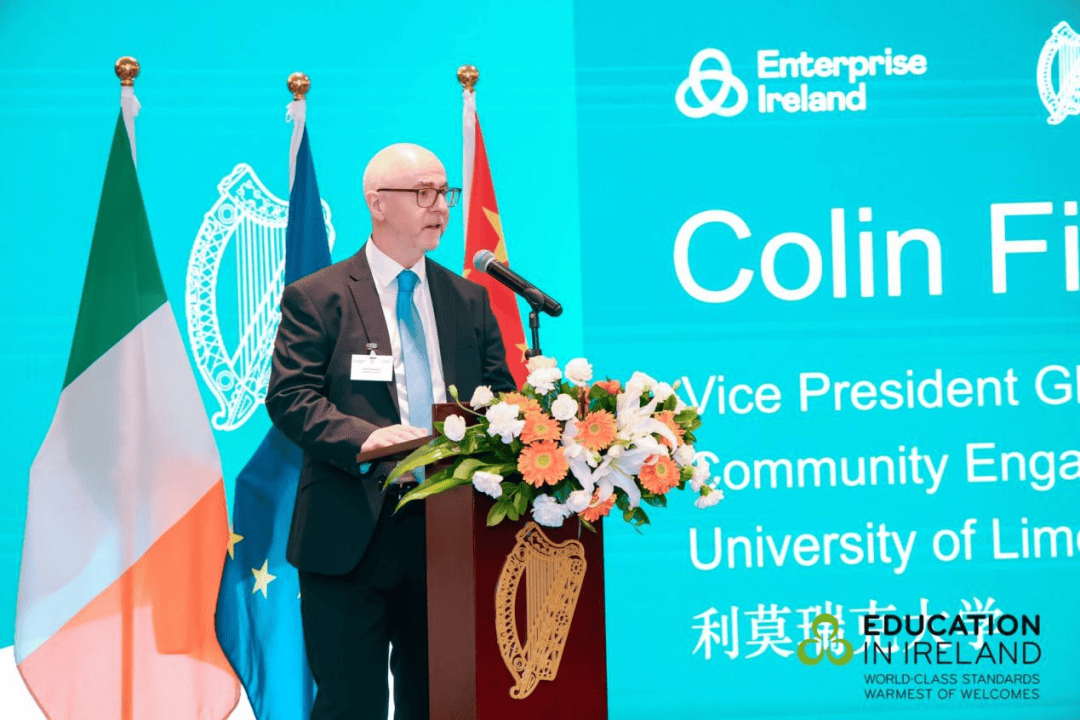 三十多年来,我校共接待了4500名中国学生,130名中国访问教师,并派遣80多名爱尔兰教师赴华授课。其中,格里菲斯学院与河北金融学院持续16年的合作办学项目,已成为中爱合作办学的优秀典范。2024年,河北金融学院教师赴爱尔兰进行联合授课,并为我校学生开设中文和中国文化课程。我们还共建了爱尔兰研究中心,共创优质教育平台。今天,我们非常高兴在这里签署金融学4+0双学位中外合作办学协议。我们同样为河南经贸职业学院格里菲斯国际学院成功设立感到骄傲。