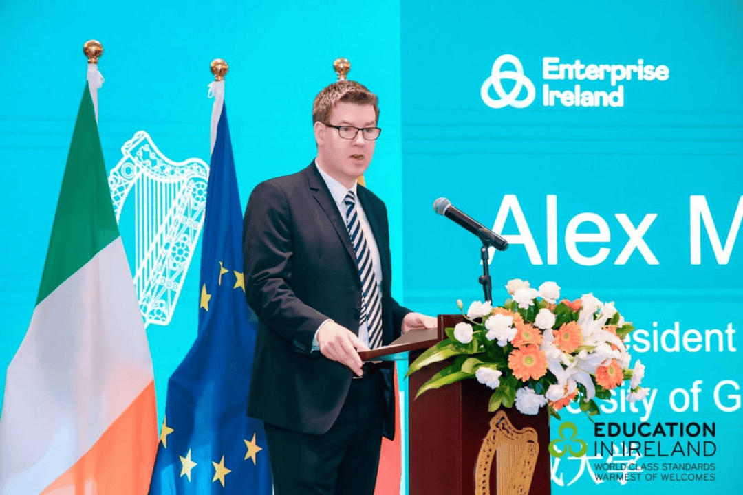 2012年,我校与北京工业大学合作成立北京工业大学北京-都柏林国际学院;2020年,与长安大学合作成立长安都柏林国际交通学院(CDIC),与华南农业大学合作成立华南农业大学广州都柏林国际生命科学与技术学院(GDIC)。目前,三所学院每年共招收940名学生,涵盖10个不同学术专业。未来几年,我们将在GDIC增设微生物学专业,在CDIC增设地理信息系统专业,使我们的跨国教育学生规模达到约5000人。同时,我们将深化科研合作,结合各自优势实现科研影响力和可见度的最大化。校友是中爱两国人民之间的桥梁。随着他们职业发展和成长,他们有潜力进一步推动两国关系,在商业、贸易、教育及其他共同关注领域发挥积极作用。